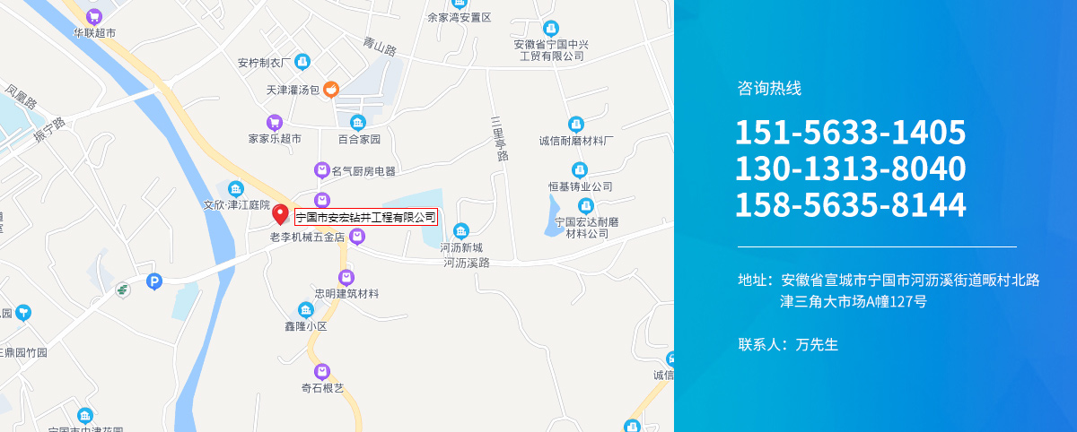 - 寧國市安宏鉆井工程有限公司,前為安徽興旺鉆井工程隊成立于1998年,公司從事安徽鉆井(宣城打井、寧國打井、蕪湖打井、池州打井、宿州打井、桐城打井、銅陵打井、南陵打井、郎溪打井、廣德打井、績溪打井、馬鞍山打井等),江蘇鉆井(南京打井、高淳打井...